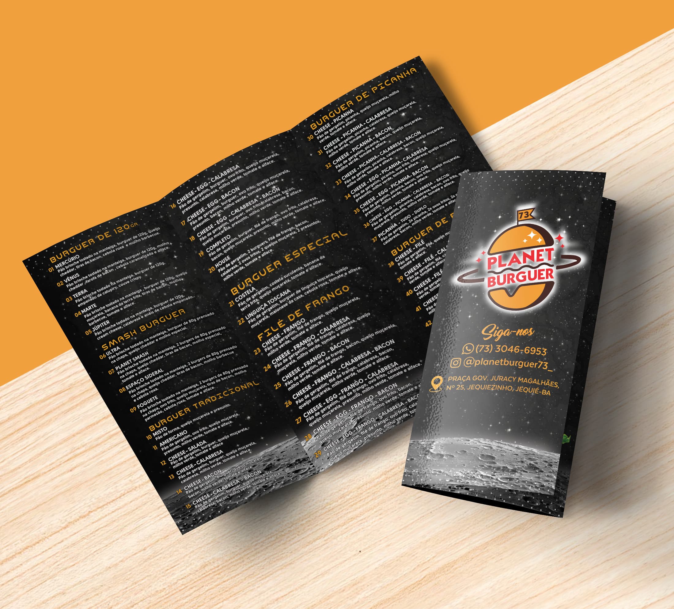 The entire idea for Planet Burger's visual identity was around the galaxy, this was the customer's request and desire. As the name of the business needs no explanation, I introduced the planetary idea, as a warm and happy color palette.